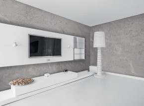 Industrialny beton. Modny obecnie przemysłowy styl wnętrza można stworzyć samodzielnie za pomocą dekoracyjnej masy, imitującej surowy beton z widocznymi wżerami i ubytkami jego powierzchni. Po zagruntowaniu podłoża gruntem szczepnym w kolorze betonu, aplikuje się dobrze wymieszaną warstwę masy.