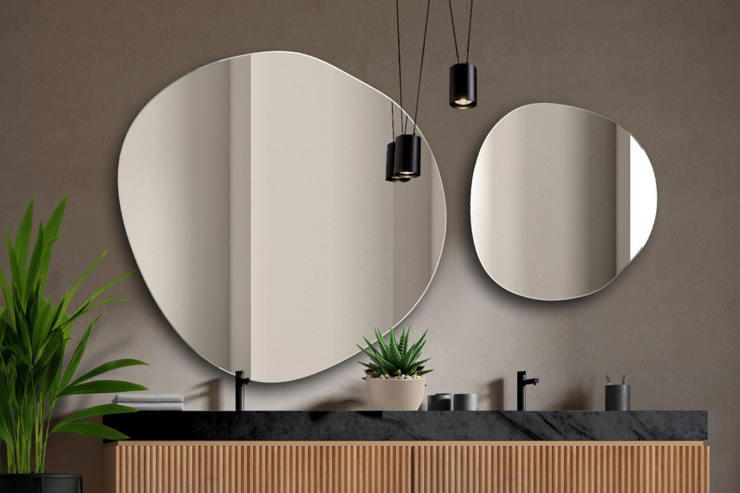 Nieregularne lustro Lapis zachwyca swobodną, organiczną formą, która wygląda jak uchwycony w tafli szkła fragment natury. Obła linia wprowadza do wnętrza miękkość i lekkość, przełamując geometryczne schematy. To lustro, które działa jak dekoracyjny akcent - subtelny, a jednocześnie przyciągający uwagę i budujący charakter przestrzeni.