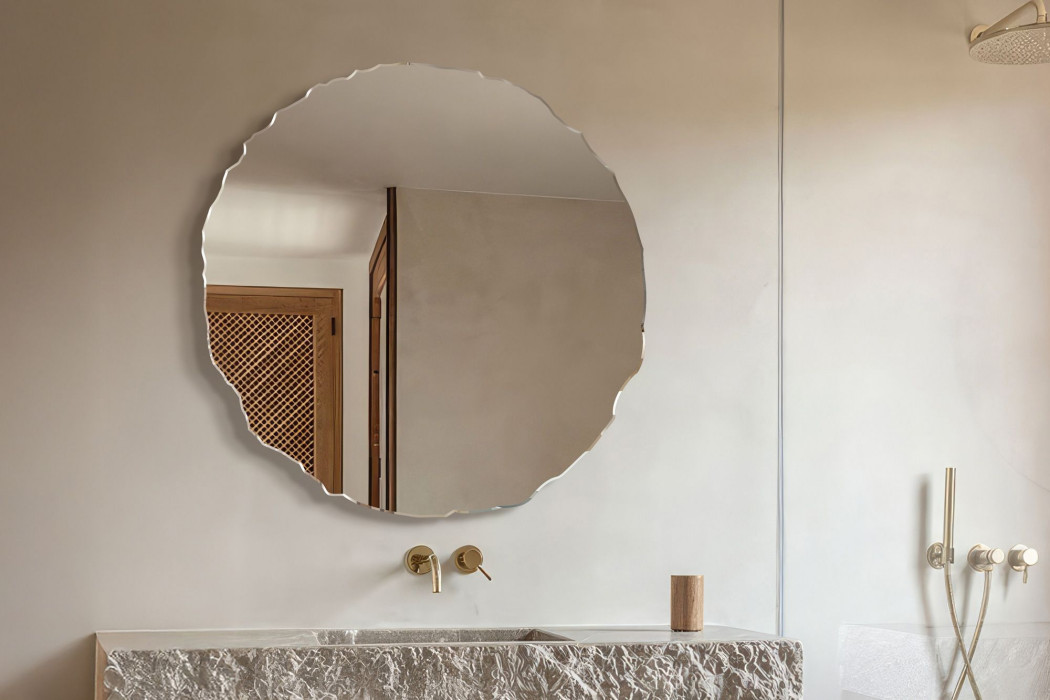 Lustro Era zachwyca nieregularną, falowaną krawędzią inspirowaną naturalnie rozłupanym kamieniem. Jego forma wprowadza do wnętrza surową elegancję i subtelną dynamikę. To propozycja dla miłośników estetyki wabi-sabi i nowoczesnych aranżacji z nutą natury.