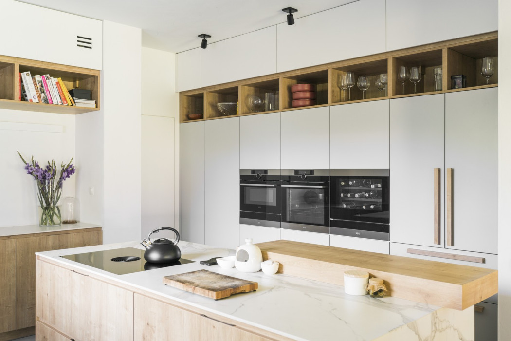 Kuchnia łączy z fronty laminowane ze spiekami kwarcowymi