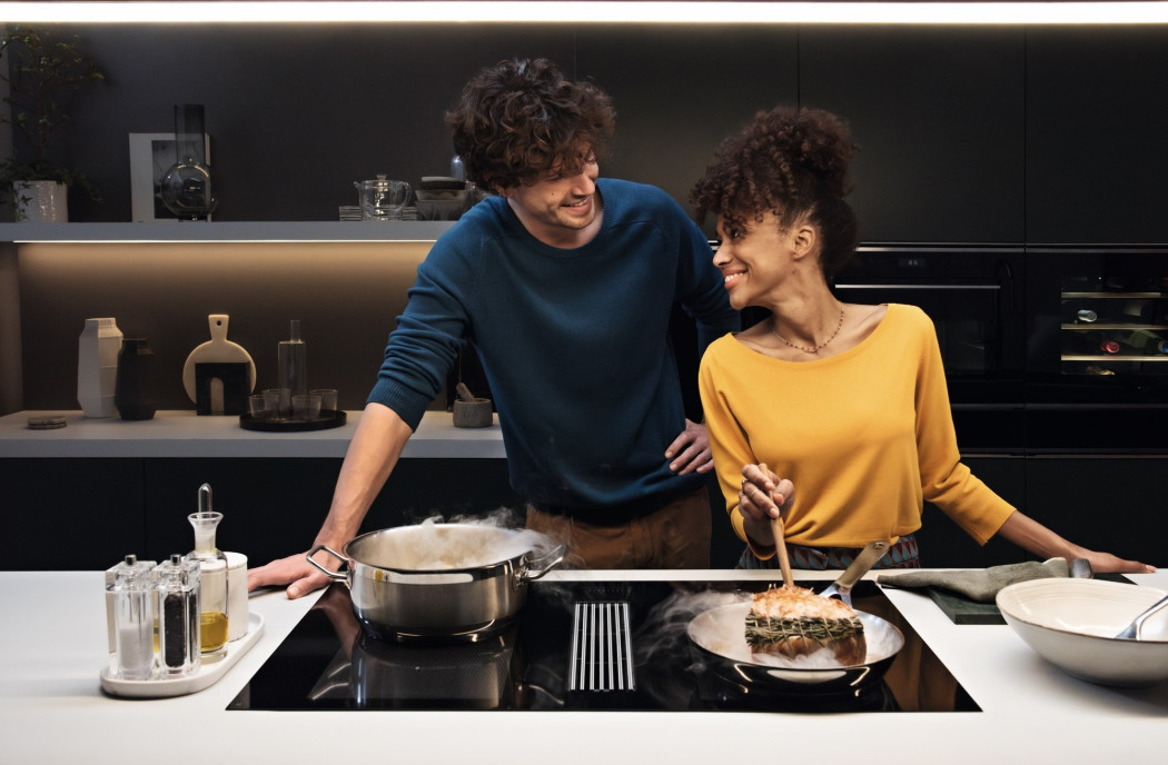 Płyty zintegrowane z okapem stają się coraz bardziej popularne w kuchni. Nowe modele, Mythos 2gether Icon Steel oraz Maris 2gether Minimal Black, łączą w sobie automatyzację gotowania i oszczędność miejsca. Oferują precyzyjną kontrolę temperatury na 9 poziomach grzania, opcję łączenia sąsiednich pól grzewczych (Flexi), funkcję Booster oraz wysoką efektywność energetyczną. Wygodny dostęp do filtrów oraz możliwość ich mycia w zmywarce (filtr węglowy można także suszyć w piekarniku) ułatwiają konserwację i ponowne użycie. Kompaktowe wymiary silnika oznaczają dodatkową oszczędność miejsca w szafce kuchennej.