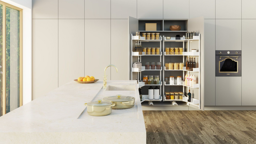 Cargo Maxi Space Duo to innowacyjny system, który pomoże stworzyć funkcjonalną spiżarnię. Półki umieszczone są wewnątrz szafki i na froncie, co ułatwia organizację artykułów. Oferowany w czterech wersjach kolorystycznych: z pełnymi koszami w eleganckiej czerni z dekorem drewnianym, ponadczasowej bieli ze szkłem oraz w wersji klasycznej z ażurowymi koszami w kolorze grafitowym lub chromie.