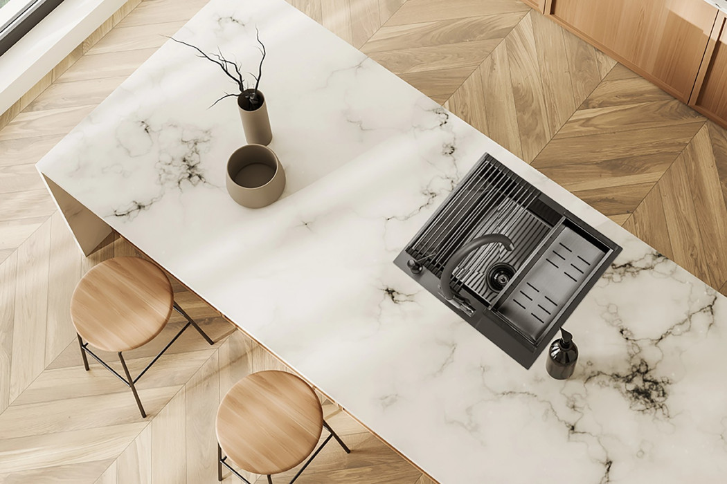Stalowy zlewozmywak Malawi od Laveo to kompletny i stylowy zestaw: zwijany, antypoślizgowy ociekacz z gumowymi końcówkami, dopasowana stalowa wkładka i estetyczny dozownik w kolorze zlewu tworzą spójną całość. Wykonany ze stali 304, odporny na zarysowania i temperaturę, oferuje montaż wpuszczany lub na równi z blatem oraz niezawodny syfon ze zmywarką. Gwarancja 15 lat.