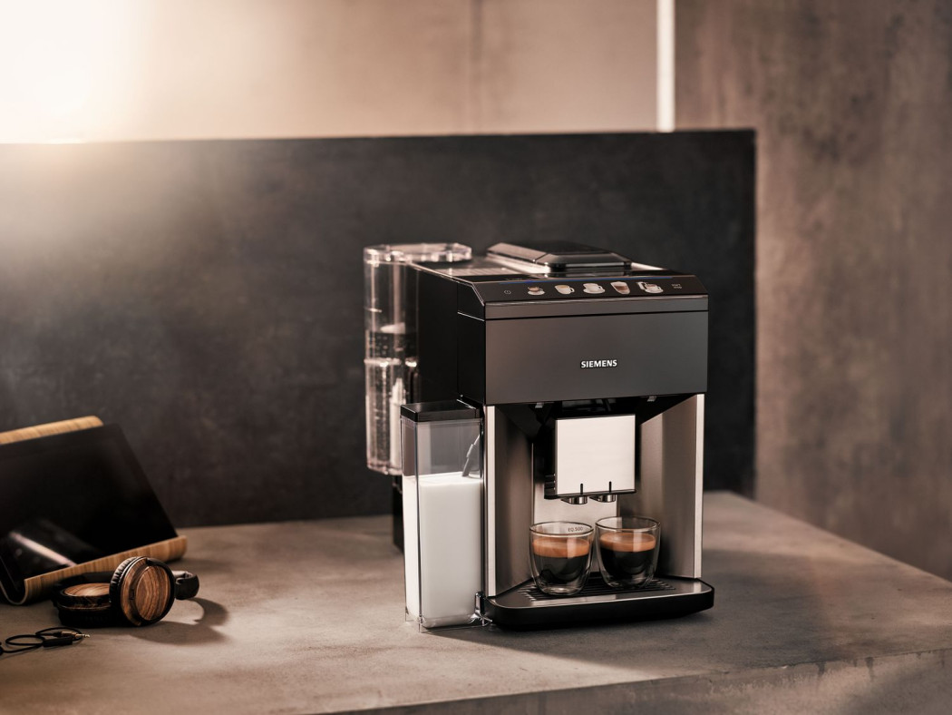 Podwójna radość za jednym dotknięciem. Cokolwiek wybierzesz: mocne espresso, kremowe cappuccino czy latte macchiato, w ekspresie Siemens EQ.500 możesz zrobić dwie porcje każdego napoju za jednym naciśnięciem przycisku. Twój ekspres dostosuje ustawienia do Twoich życzeń i przygotuje dwie takie same kawy jednocześnie.