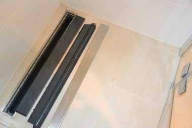 Obawiałem się trochę ich reakcji, bo kabinę z brodzikiem montuje się o wiele szybciej i łatwiej, niż wylewa od nowa posadzkę z odpływem. Zmierzyli podkucie i powiedzieli - da radę założyć odpływ liniowy. Kamień z serca! Ruszyłem do sklepu - wolę sklep od Internetu, bo mogę wszystko zobaczyć, dotknąć, zapytać sprzedawcę. Wcześniej trochę poczytałem opinie na forach, opisy w poradnikach budowlanych itp.