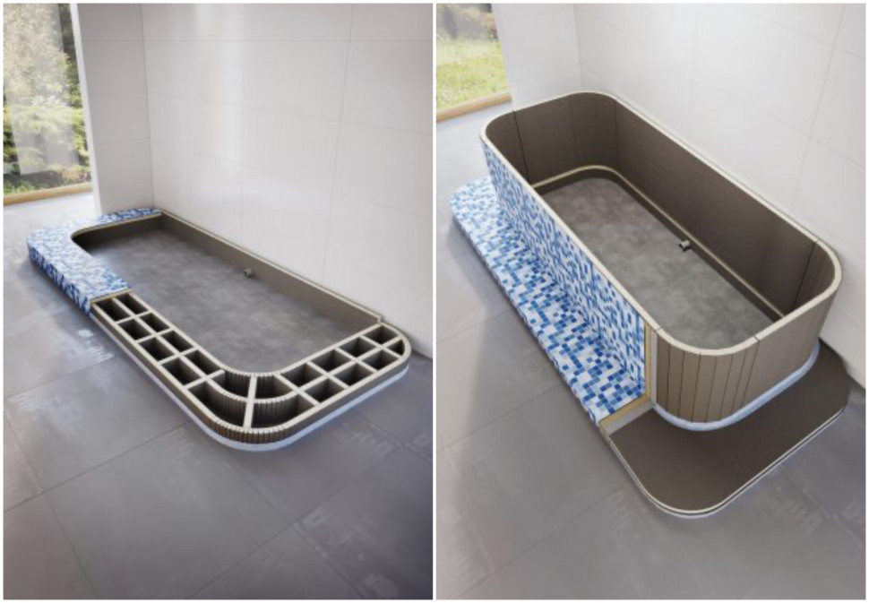 Jeśli chcemy wykorzystać płytę Ultrament do zabudowy wanny - zarówno prostokątnej, jak i owalnej - warto zwrócić uwagę na płyty o grubości 20 lub 30 mm, które mają fabrycznie wykonane nacięcia. Dzięki nim łatwo wyprofilujemy płytę, dostosowując ją do dowolnego kształtu wanny. Alternatywą dla zabudowanej wanny jest nowoczesny prysznic zlicowany z podłogą. Dla uzyskania spójnego efektu wizualnego, zarówno brodzik, jak i podłogę warto pokryć tą samą okładziną ceramiczną. Aby zapewnić stabilność i wodoszczelność takiej konstrukcji, wystarczy zamontować w posadzce gotową płytę brodzikową z fabrycznie wyprofilowanymi spadkami i odpowiednim odpływem - liniowym lub punktowym. Płytę należy przymocować za pomocą kleju i uszczelniaczy.