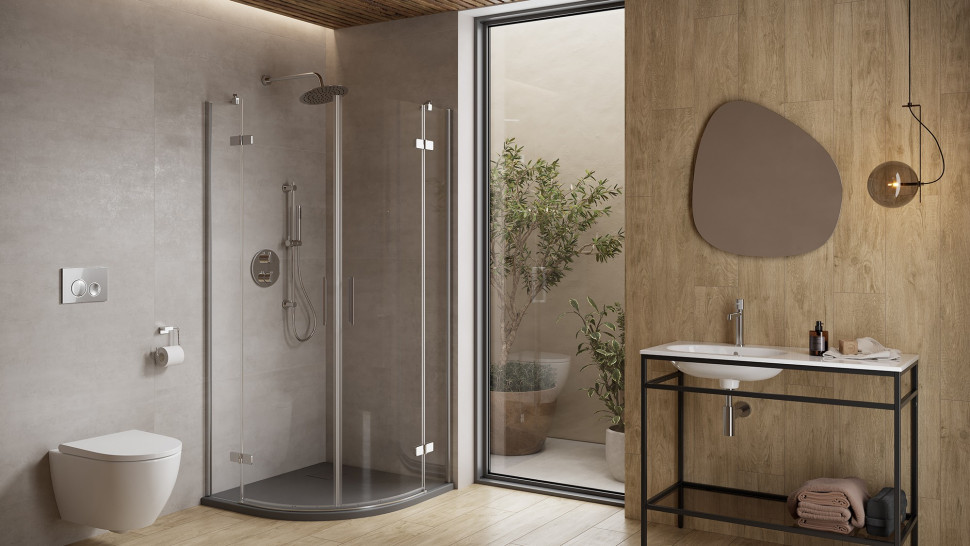 To połączenie skandynawskiego zamiłowania do funkcjonalnego minimalizmu oraz duńskiego hygge – dążenia do szczęścia, harmonii otoczenia i wewnętrznej równowagi. Zarówno styl skandynawski, jaki filozofia hygge bezpośrednio koreluje z naturą, dlatego sięgamy po naturalne materiały wykończeniowe takie jak drewno, szkło, stal w jasnych rozświetlających barwach i prostych formach. Możemy postawić na organiczne kształty luster, półokrągłe kabiny prysznicowe, ale również na klasyczne prostokąty w przypadku umywalek czy też przycisków spłukujących, które stylowo będą równoważyć obłe linie ceramiki toaletowej. Nurt skandynawski nie pozwala wykraczać poza to, co niezbędne, jednak filozofia hygge przyzwala na drobne przyjemności. Dlatego też dobierając dodatki można sięgnąć po wszystko to, co wprawi nas w pożądany błogostan.