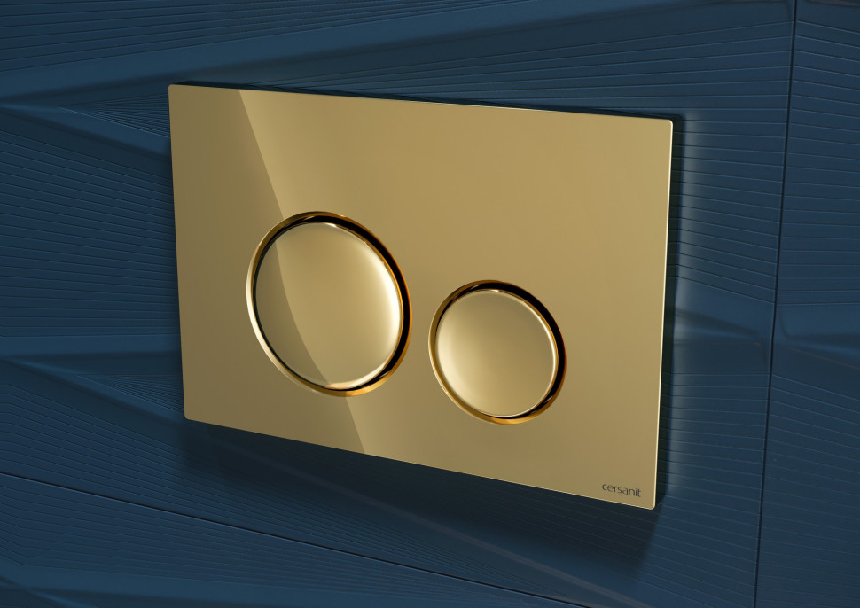 Przycisk spłukujący LUNA by Cersanitw wykończeniu złoty połysk to kwintesencja elegancji w nowoczesnym wydaniu. Ten niepozorny element wyposażenia stanowi interesujący akcent dekoracyjny zarówno w łazienkach urządzonych w stylu minimalistycznym, jak i tych bardziej klasycznych. Prostokątna płytka z dwoma okrągłymi klawiszami spłukującymi o lekko wypukłym profilu - to zabieg projektowy, który sprawia, że przycisk prezentuje się stylowo i harmonizuje z ceramiką łazienkową (np. nawiązując do obłych kształtów miski WC). Błyszcząca powierzchnia złota przyciąga wzrok i dodaje szyku strefie toalety, która dotąd często była pomijana pod względem dekoracyjnym. Dzięki LUNA by Cersanit nawet tak funkcjonalny detal, jak panel spłuczki, może stać się elegancką ozdobą ściany.