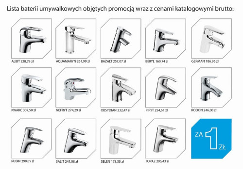 Jubileuszowa promocja Armatury Kraków obejmuje zestaw umywalki i dopasowanej do niej szafki z linii LOARA lub SELLA oraz kompletującej całość baterii umywalkowej w cenie 1zł. Wśród 14 proponowanych modeli znajdziemy inspirowany naturą Topaz, kompaktowy Piryt oraz tegoroczne nowości Grupy Armatura – klasyczny German i geometryczny Selen. Dzięki ponadczasowemu wzornictwu, baterie łatwo zharmonizują się z elegancką ceramiką i meblami łazienkowymi z oferty firmy.