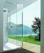 Innowacją jest także zestaw natryskowy i armatura termostatyczna, zamontowane poziomo na eleganckiej półce łączącej szklane ściany kabiny. Dzięki takiemu rozwiązaniu w kabinie znalazło się wygodne miejsce na przybory toaletowe.