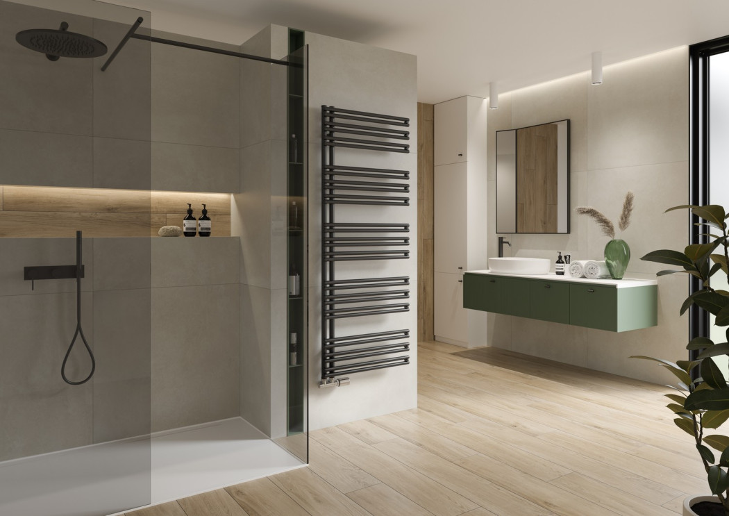 Łazienkowy grzejnik dekoracyjny Gate marki Purmo przypomina swoim wyglądem nowoczesną bramę. Dzięki ułożeniu kolektorów w sekcje zapewnia on wygodną przestrzeń do suszenia ręczników łazienkowych. Dzięki uniwersalnemu układowi podłączeń, pionowe kolektory mogą się znajdować z prawej, lub z lewej strony. Grzejnik jest obracalny.