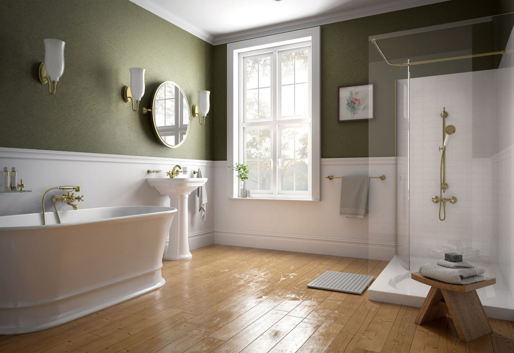 Miłośnicy luksusu, ale w duchu retro, powinni zwrócić uwagę na salon kąpielowy w tonacji biało-oliwkowej. Doskonale odnajduje się w tej roli armatura Antica stylizowana na dawną. Pyszni się szlachetnym odcieniem starego brązu, krzyżowymi pokrętłami, kunsztownie wyprofilowanymi wylewkami. Baterie wyposażono w regulatory ceramiczne, więc są nie tylko gustowne, lecz także trwałe.