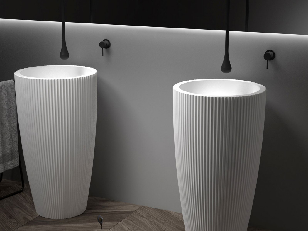 BERNSTEIN TWZ316 to wolno stojąca umywalka wykonana z wysokiej jakości odlewu mineralnego, solidnego i trwałego. Technologia Solid Stone zapewnia przyjemnie ciepłą i gładką powierzchnię. Ten antybakteryjny materiał to pewność wysokiej higieny, łatwość w utrzymaniu i trwałość kolorów. Wysokość 90 cm oferuje wygodę i swobodę korzystania z umywalki. Artystyczny, antyczny styl nada łazience oryginalnego i eleganckiego charakteru. Dostępna w kolorze białym i czarnym.