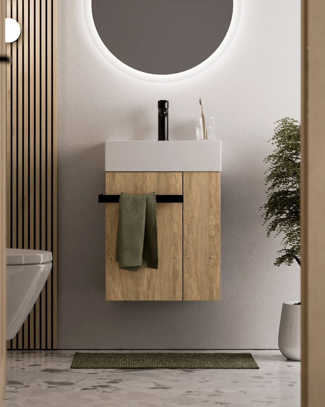 Zmaksymalizuj przestrzeń w małej łazience i nie rezygnuj z dodatkowego miejsca na przechowywanie. Nasze szafki podumywalkowe z serii WC COMPACT 450 posiadają zintegrowaną umywalkę i idealnie pasują do małych przestrzeni. Stwórz nowoczesną i otwartą atmosferę w Twojej łazience już dziś! Zaprojektuj łazienkę z Bernstein - bez kompromisów.
