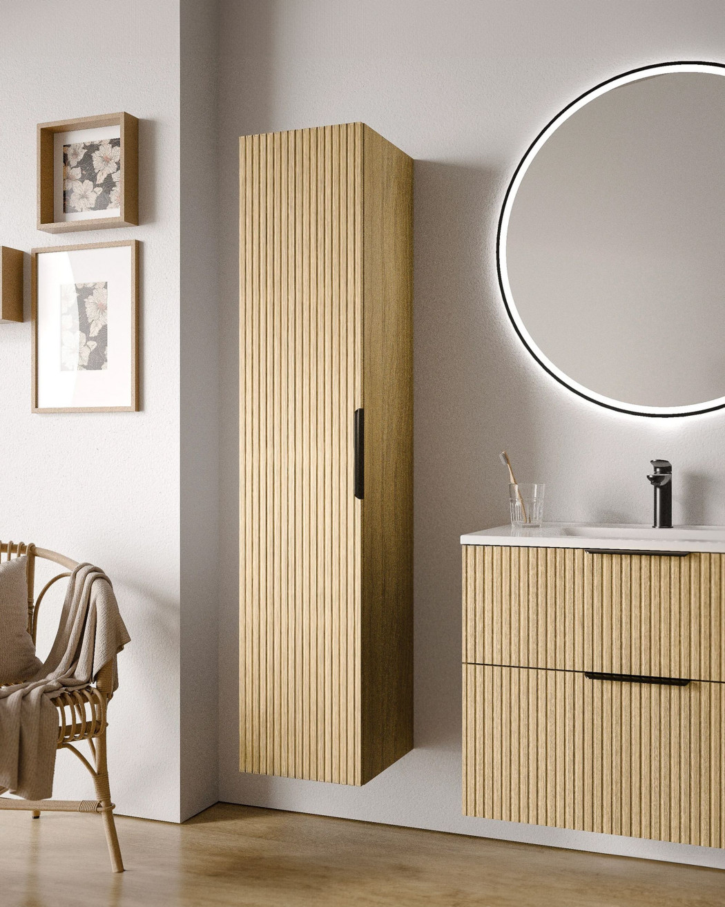 Marzysz o przytulnej łazience w stylu Boho? Poznaj serię mebli TIM od Bernstein! Nasze dębowe szafki z frezowanymi frontami wprowadzą zew natury do Twojej łazienki. Stwórz ciepłą i przytulną atmosferę, bez kompromisów względem miejsca do przechowywania. Nadaj swojej łazience wyjątkowy charakter z Bernstein!