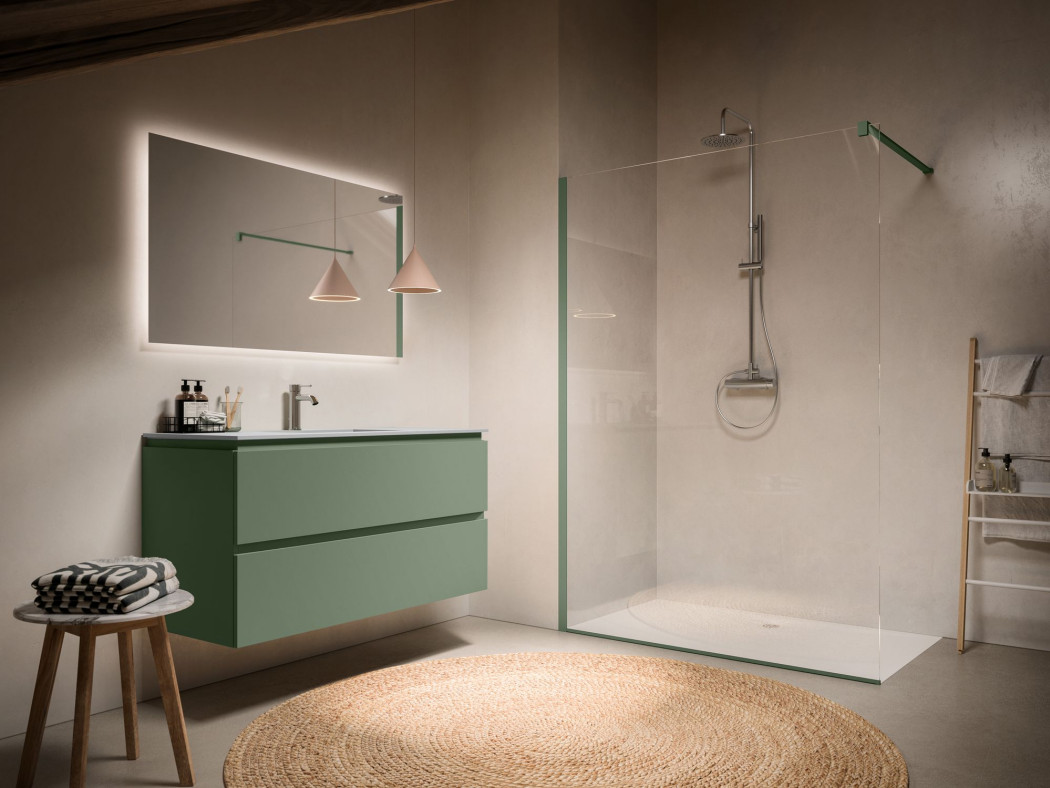 Ekskluzywne, modułowe meble łazienkowe z umywalkami nablatowymi lub zintegrowanymi z blatem, dostępne w wielu kolorach zgodnych z najnowszymi trendami. Meble AMIATA idealnie komponują się z kabinami walk-in EASY, których profile dostępne są w tej samej palecie barw.