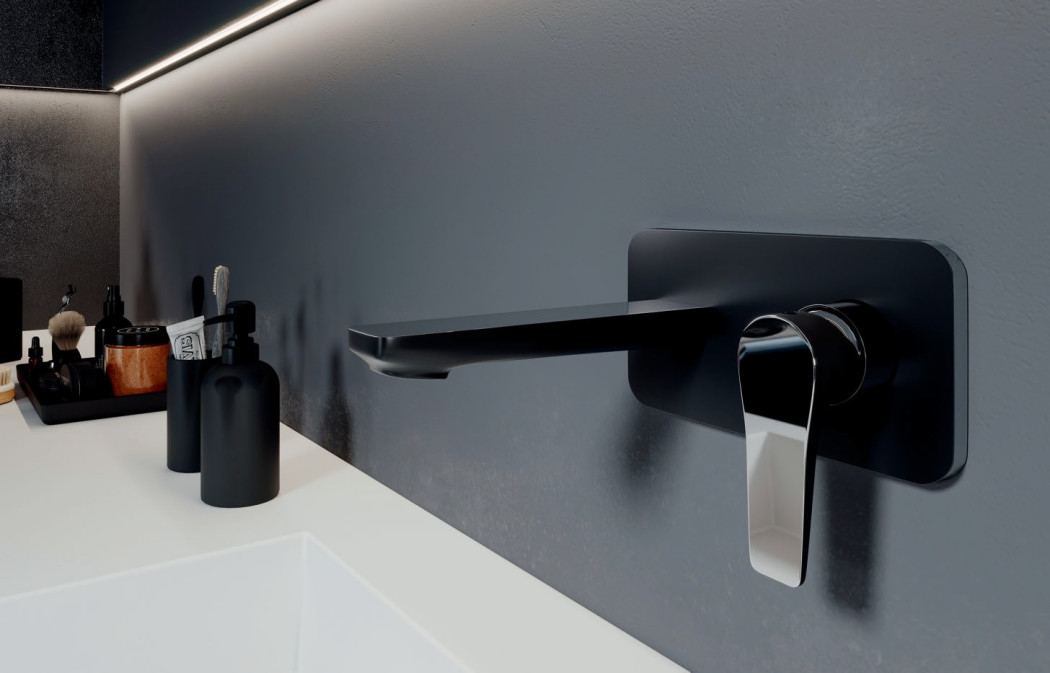Bateria umywalkowa podtynkowa Adore Black/Chrome utrzymana jest w modnym odcieniu matowej czerni.