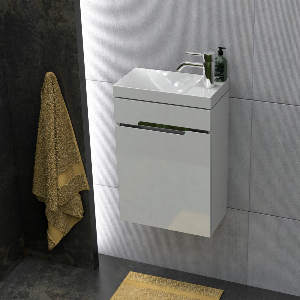 Szukasz poręcznego rozwiązania do małej toalety przy sypialni lub toalety gościnnej? Nie szukaj więcej! To dla Ciebie jest zestaw Silver – idealna kompozycja małej i bardzo zgrabnej umywalki syntetycznej z szafką z drzwiami.