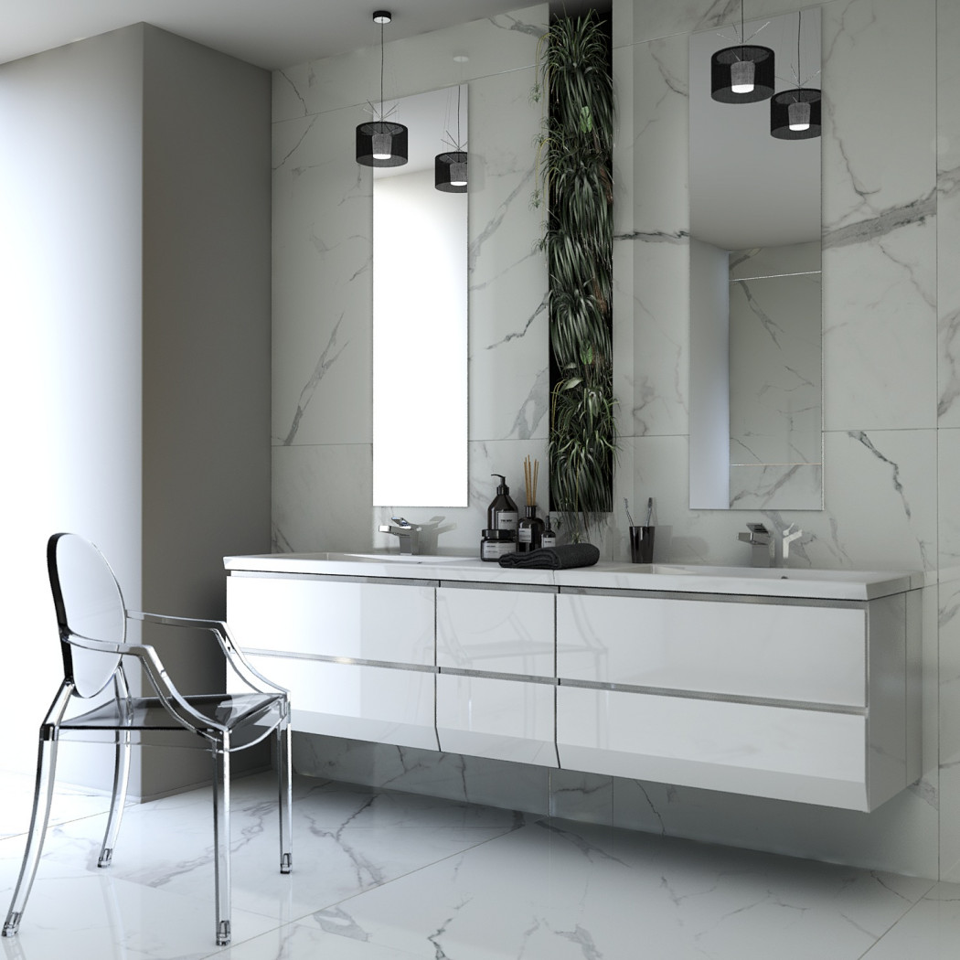 Szafki podumywalkowe Brylant można kompletować z szafkami bocznymi i przykrywać wspólnymi umywalkami o szerokości 125 cm.