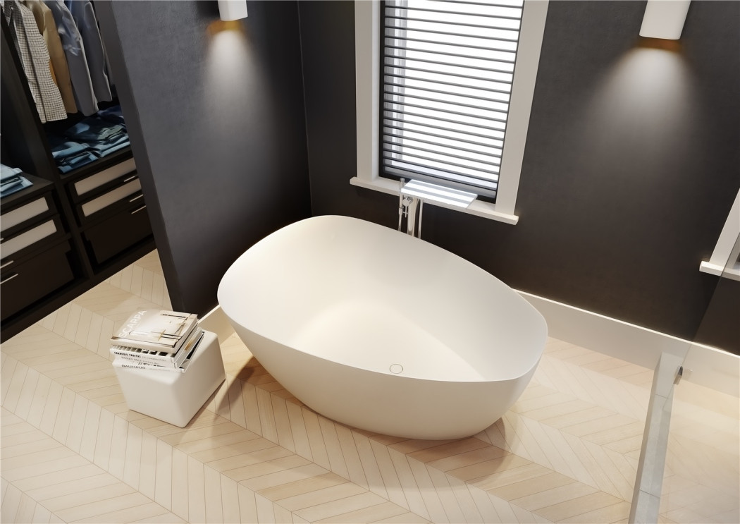 Wolnostojąca, dwuosobowa wanna Toledo (158 x 110 cm) będzie niewątpliwie dumą i ozdobą każdego salonu kąpielowego. Toledo wykonano z materiału pochodzenia mineralno-akrylowego (Solid Surface), a jej cechą wyróżniającą są (bardzo modne teraz) cienkie krawędzie.
