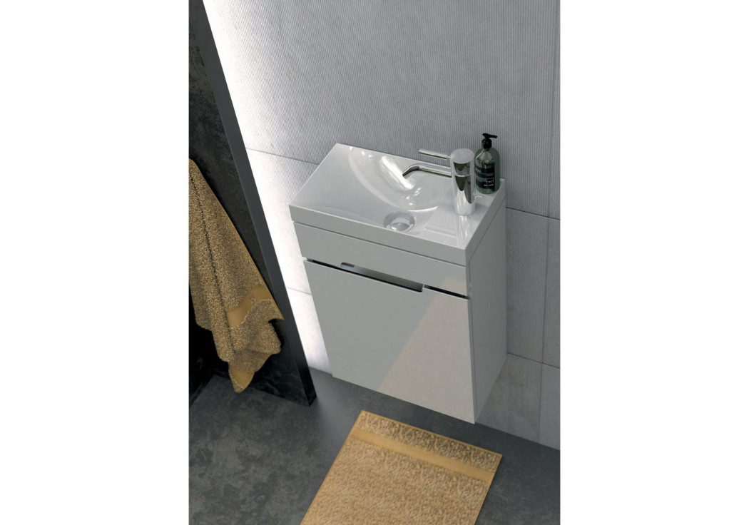 Zestaw Silver - kompozycja małej, zgrabnej umywalki syntetycznej z szafką z drzwiami