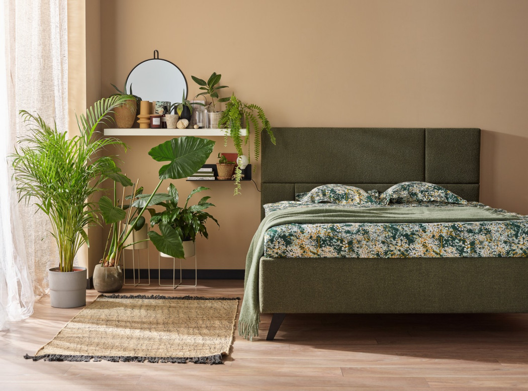 Eleganckie, 2 osobowe łóżko tapicerowane Geometric z uchylnym stelażem i dużym pojemnikiem na pościel. Miękki szczyt z delikatnym, regularnym pikowaniem stanowi wygodne oparcie dla pleców. Mebel jest produkowany w Polsce na indywidualne zamówienie - kupujący sam decyduje o tkaninie obiciowej i rodzaju nóżek.