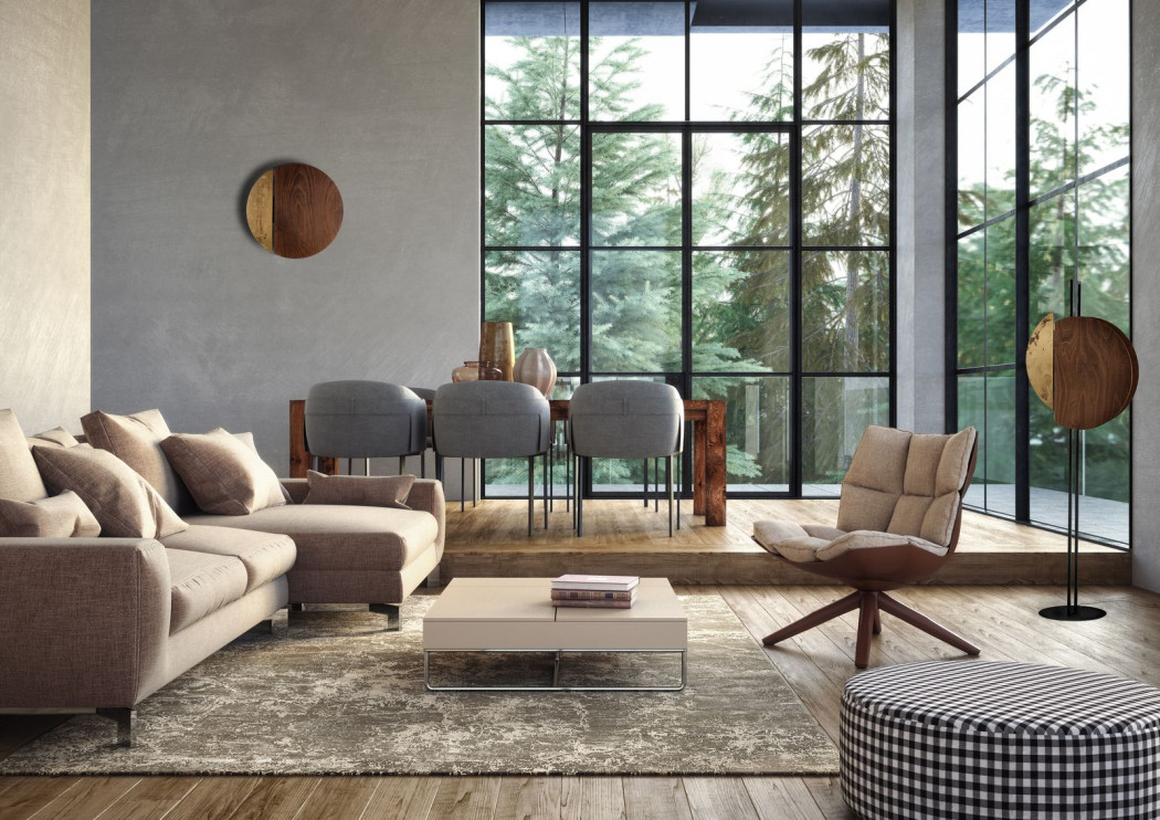 Kolekcja SUNSET składa się z lampy podłogowej oraz trzech rodzajów kinkietów. Uwagę przyciąga oryginalny design i nietypowe zestawienie materiałów użytych do produkcji. Stylistyka lamp oparta jest na kołach o średnicy 50 cm, wykonanych ze sklejki wybarwionej w modnych kolorach brązów, z zachowaniem naturalnych słojów drewna. Sklejkę połączono z elementami czarnej stali i delikatnymi złoceniami, które "pracują" światłem odbitym, dodając efektu glamour. Koła zamocowane są na metalowej czarnej konstrukcji, która dystansuje je od ściany i pozwala ukryć źródło światła, a jednocześnie jest prosta w montażu.