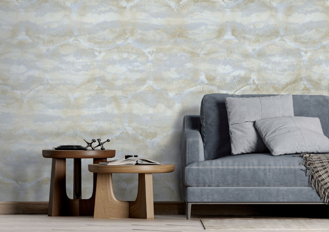 AMNIS - wzór zainspirowany strumieniem. Metaliczne elementy wzoru połyskują niczym płynąca woda, w której przeglądają się promienie słońca. Paleta kolorów tapety AMNIS nawiązuje do barw, jaką przybiera strumień o różnych porach dnia: poranne słońce rozświetla go szarościami i błękitem, w południe wodą płyną złote drobinki, a zachodzące słońce żegna się ciepłymi odcieniami miedzi i pomarańczu.