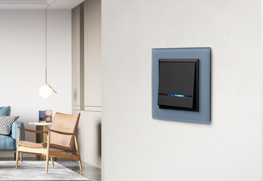Nowoczesność w niebieskich detalach. Niebieskie ramki szklane do osprzętu elektrycznego dodadzą subtelnego uroku wnętrzom. Nowoczesny design i funkcjonalność w jednym.