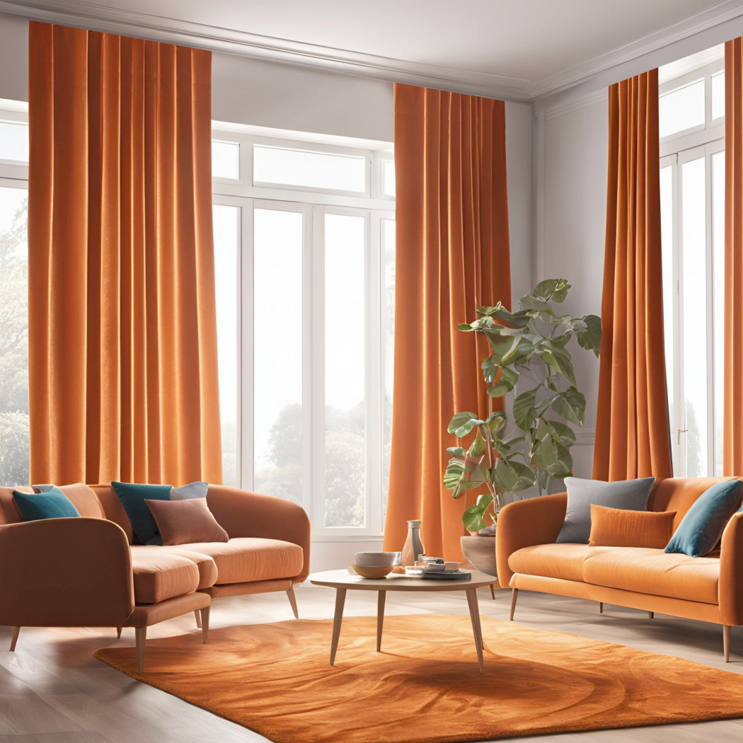Wyobraź sobie przestrzeń, w której każdy detal buduje atmosferę luksusu i ciepła. Welwetowe zasłony w intensywnym odcieniu pomarańczu to prawdziwa perła tego wnętrza – ich miękka faktura i głęboki kolor dodają elegancji, jednocześnie wprowadzając przytulność. To nie tylko dekoracja, ale także sposób na stworzenie klimatu pełnego harmonii i stylu. Otwórz się na odważne barwy i pozwól, by Twoje wnętrze zachwycało każdego dnia!