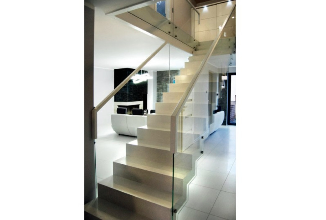 W projekcie sprawdzi się balustrada ze szkła hartowanego w połączeniu z drewnem czy stalą nierdzewną. Rozróżniamy schody dywanowe jednozabiegowe, zabiegowe, wachlarzowe.