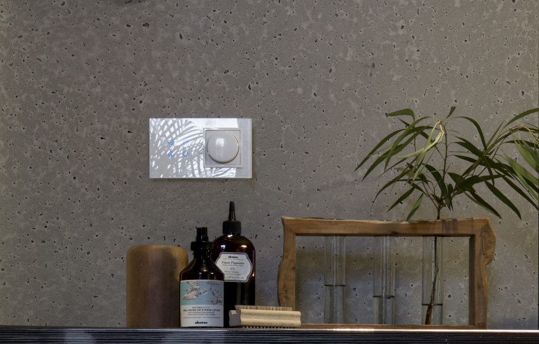 Biały panel Simon 54 Touch z poczwórnym polem dotykowym i ściemniaczem.