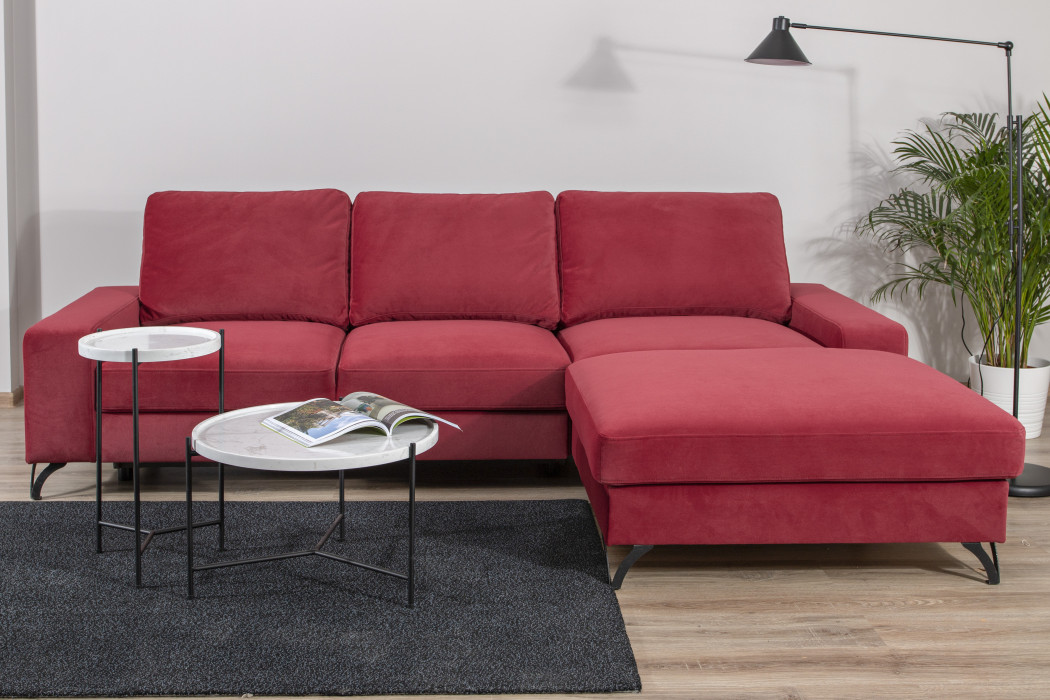 Flavio to mebel, który tworzymy przez wybór poszczególnych modułów. Daje to możliwość dopasowania jego wielkości do wnętrza, ale również do naszych potrzeb. Nowością w ofercie Comfort4U jest tzw. narożnik otwarty mały. To odpowiedź na zapytania, dotyczące zestawu Flavio do mniejszych pomieszczeń. Dzięki temu, zajmuje on aż o 30 cm mniej miejsca od swojego standardowego odpowiednika, a przy tym nie traci na swoim nowoczesnym wyglądzie. Dodatkowo posiada funkcję spania oraz duży pojemnik na pościel.