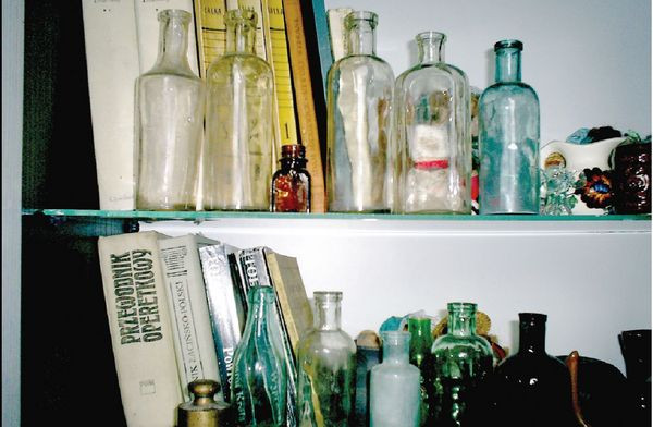 Z analizy szczątków przeszłości, wydedukowaliśmy, że podczas wojny musiał mieszkać tu aptekarz, ponieważ nasze działania archeologiczne, ujawniły ogromną ilość butelek i pojemników, których kiedyś używano w farmacji. Mniejsze i większe, uszkodzone i nie, stały się zaczątkiem kolekcji pt. "Przaśna historia naszego domu", do której z czasem dołączyły stare klucze, otwieracze do butelek, mosiężne odważniki i mnóstwo przedmiotów codziennego użytku.